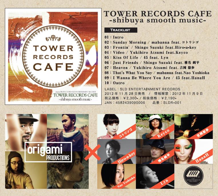 TOWER RECORDS CAFEのオープンを記念し、origami PRODUCTIONS×SLD で カフェアルバムが制作されました。 そのアルバムにコトリンゴが参加しております! 「Sunday Morning / mabanua feat.コトリンゴ」 アルバムタイトル:『TOWER RECORDS CAFE - shibuya smooth music-』 LABEL:SLD ENTERTAINMENT RECORDS 発売日:2012年11月28日 税込価格:2,300円
